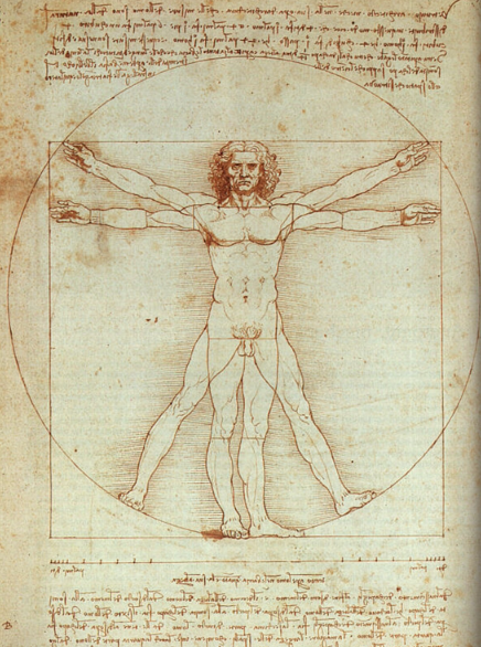 르네상스 초기의 학자들은 고대 문헌 속 비례의 '이론'을 탐독했지만, 우주론적 성격을 띤 비례론은 인체의 실측과는 거리가 있었기에, 비례론에 대한 관심이 깊을수록 외려 실제 인체에 대한 관심은 사라지는 역설적인 경향이 있었습니다. 그러나 알베르티와 다 빈치는 실제 인체에 대한 관찰과 측정으로 비례론을 경험과학의 수준으로 끌어올렸습니다.